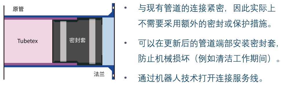 Tubetex技術(shù)的織物沒有接縫,使整個圓周上的壁厚是均勻的。對于依賴粘接的C級襯里,特別是對于輸氣管道,這是一個重要特點。