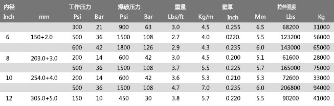 建議使用的最大工作壓力:上述爆破壓力值的50%(短暫使用)。為了保證軟管的最長(zhǎng)使用壽命,建議工作壓力或拉伸力不要超過(guò)上述參數(shù)值的1/3。