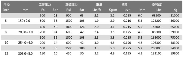建議使用的最大工作壓力:上述爆破壓力值的50%(短暫使用)。為了保證軟管的最長使用壽命,建議工作壓力或拉伸力不要超過上述參數(shù)值的1/3。
