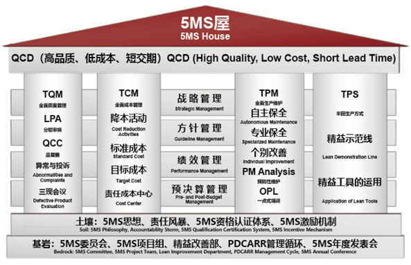 創建了“以品質為核心,徹底排除浪費”為主要內容的獨具五行特色的“5MS精益管理系統”。